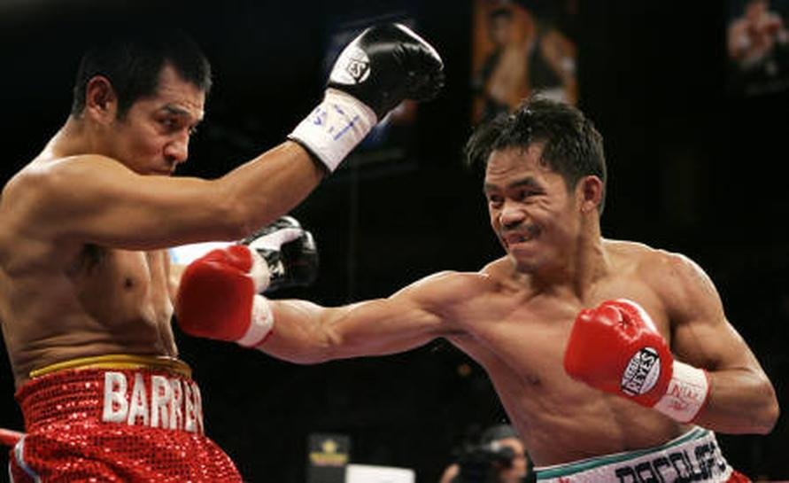 Pacquiao amerikai karrierje 2001-ben kezdődött, és aki már akkor látta bokszolni, az soha nem felejti el. Dinamika, gyorsaság és kőkemény öklök. Lehlo Ledwaba volt a szenvedő fél, aki toronymagas esélyes volt a beugró, teljesen ismeretlen Pacquiao ellen. Hasonló volt a szereposztás 2003-végén, amikor Pacquiao újabb súlycsoportváltással már pehelysúlyban vállalt mérkőzést, éspedig a fénykorát élő, egy könnyed mérkőzésre számító Marco Antonio Barrera ellen. A mexikói akkoriban abszolút szupersztár volt, a P4P-ranglisták egyik éllovasa, aki legyőzte Naseem Hamedet, visszavágott Erik Moralesnek… csak egy könnyű küzdelem, mielőtt újra valami nagyobb meccs „irányába fordulna”. De Pacquiao feltörölte vele a padlót. Szó szerint. Talán sokakban él az emlék, amikor Barrera a földön ül. Minden az arcára volt írva. Csalódottság, felismerés, elismerés. Barrera persze büszke mexikóiként felkelt, de tudta, hogy azon az estén már fikarcnyi esélye sem lesz nemhogy a győzelemre, de a tisztes vereségre sem. Nem sokkal később vége is lett a meccsnek, amikor Barrera egyik edzője a ringbe belépve véget vetett az ikon szenvedésének.